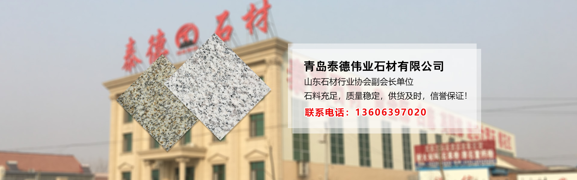 泰德石材成立于2001年,旗下擁有青島泰德偉業(yè)石材有限公司,平度市大澤山鎮(zhèn)泰德石材廠兩大石材生產基地和青島泰德精工建材有限公司,歷經17年創(chuàng)業(yè)奮斗,用專業(yè)專注、敬業(yè)勤奮的實干精神和行為習慣,使我們的銷售遍及全國各地并暢銷國外,目前是山東省石材行業(yè)協會副會長單位。 泰德石材主營品種“黃金麻”“山東白麻”,擁有兩個大型礦山和一個大型儲料場,常年儲備優(yōu)質黃金麻白麻石料32000多立方,能夠滿足大型工程的原料需要! 泰德石材工廠有“組合鋸”15臺,紅外線橋切機16臺,全自動16頭磨光機... [MORE + ]